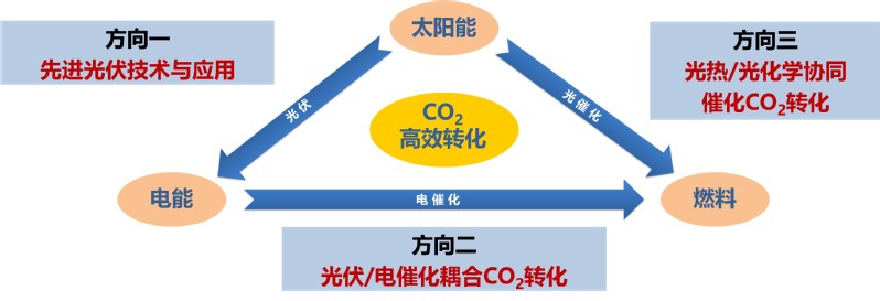 实验室以实现太阳能驱动高效二氧化碳转化利用为目标,聚焦光伏/电催化耦合转化及光热/光化学协同催化转化两条技术路线,针对功能材料体系中的电子转移、能量传递和电荷分离这一共性关键科学问题,开展先进光伏技术与应用、光伏/电催化耦合二氧化碳转化、光热/光化学协同催化二氧化碳转化三个方向的研究。